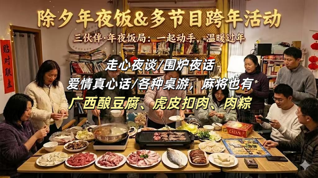 【已成行】除夕年夜饭,一起动手,饭后走心夜谈/爱情真心话/围炉夜话/桌游/聊聊八个字等